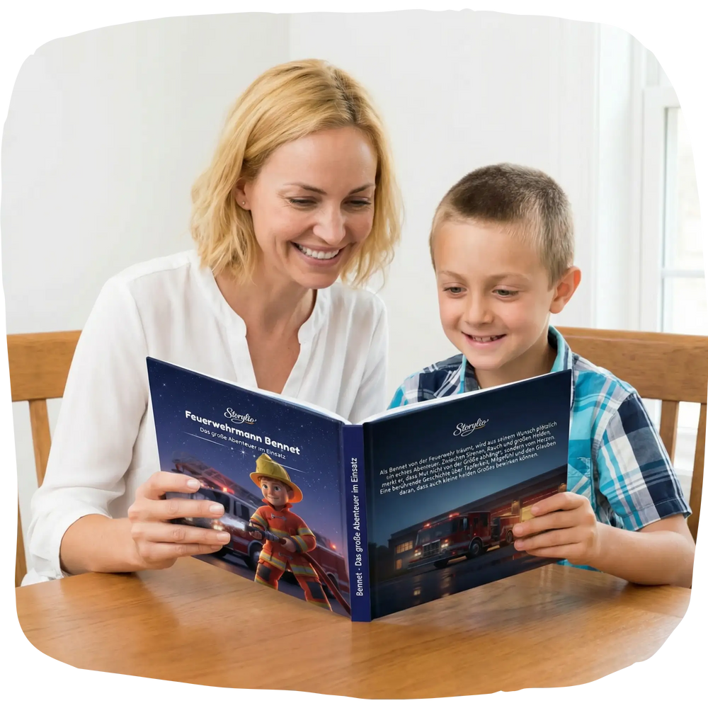 Jedes Buch wird in Deutschland auf hochwertigem, langlebigem Papier gedruckt. Kräftige Farben, stabile Seiten und ein robuster Hardcover-Einband sorgen dafür, dass die Geschichte deines Kindes viele Jahre überdauert.