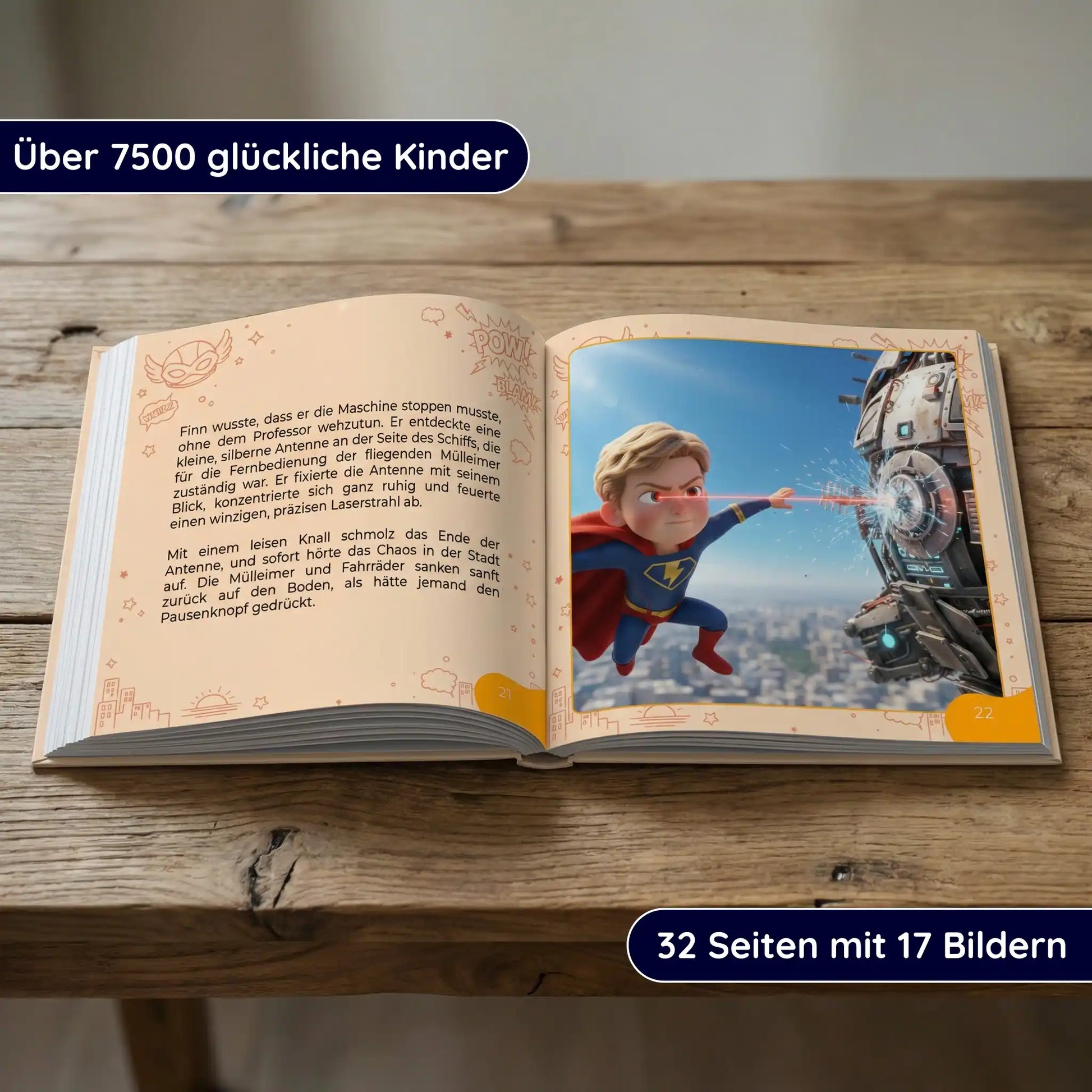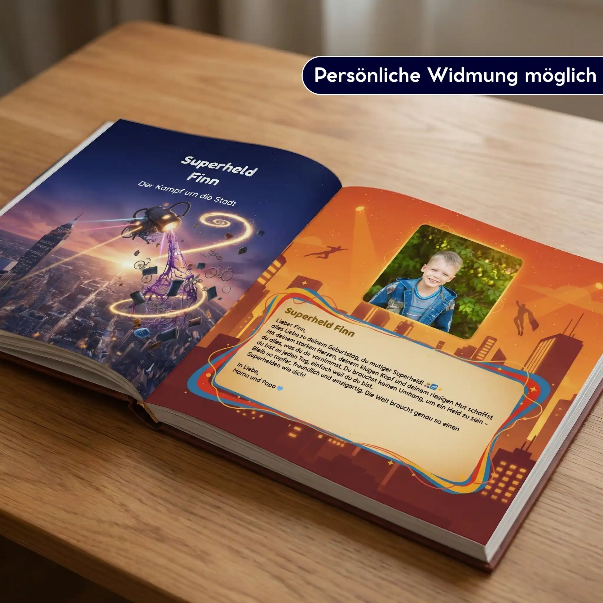 Vom ersten bis zum letzten Kapitel wird dein Kind nahtlos in die Geschichte integriert, professionell gestaltet und hochwertig umgesetzt.